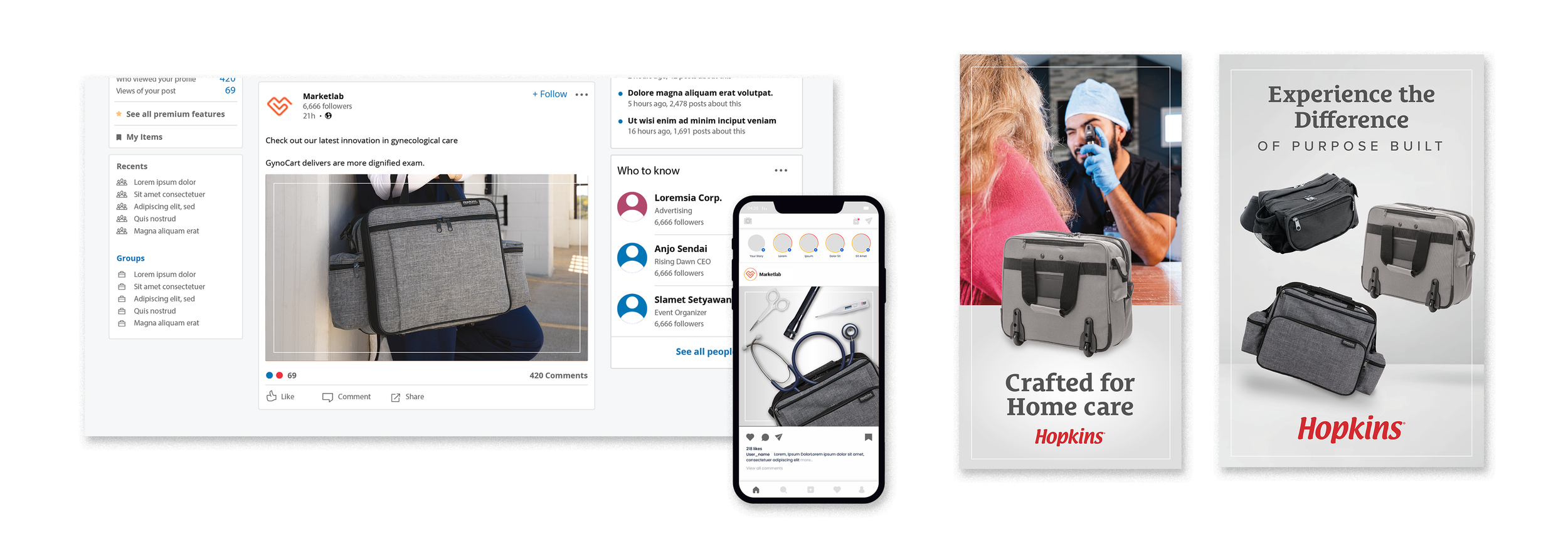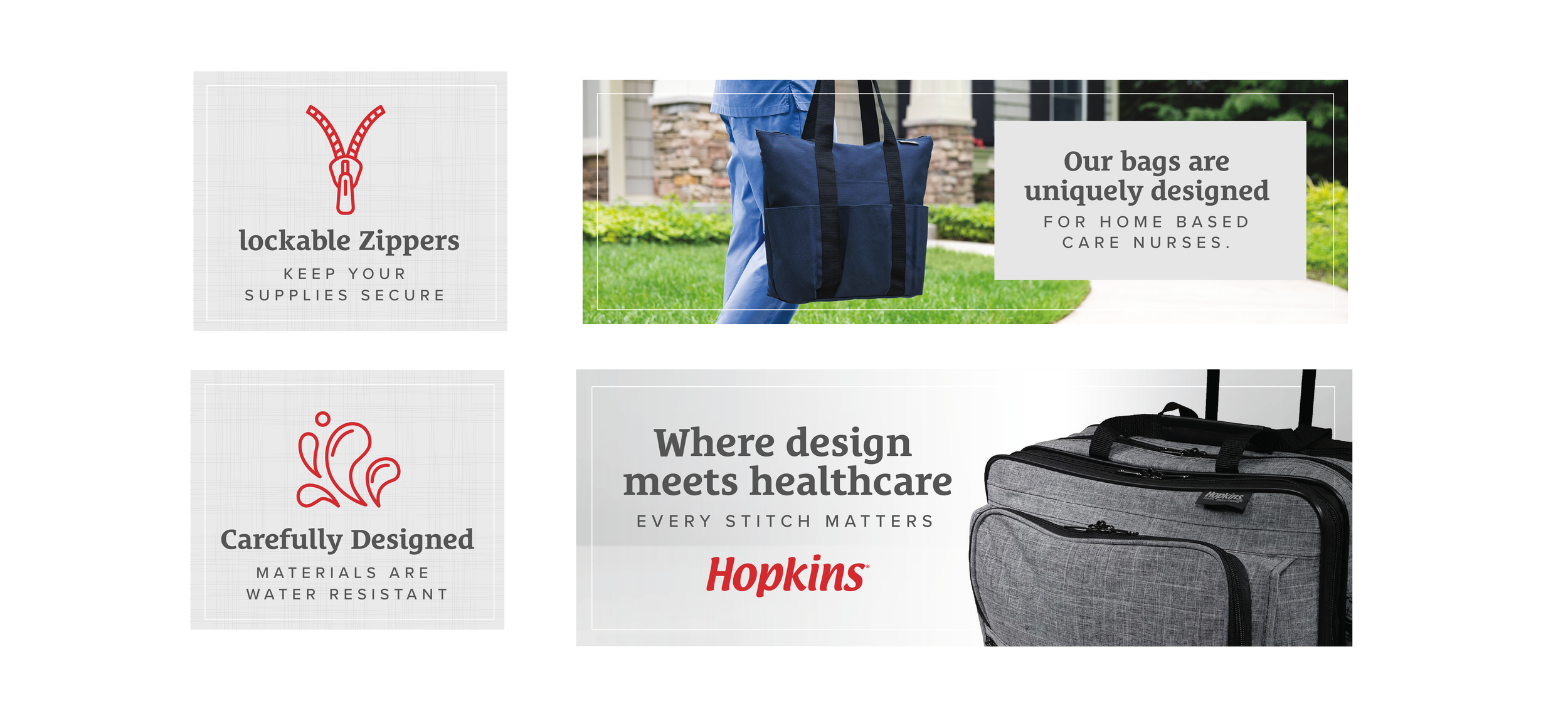 The Hopkins Crafted for Care campaign was developed as a cohesive, omni-channel experience designed to showcase a line of thoughtfully engineered medical bags for in-home nurses and healthcare professionals. Each product balances function and form—featuring specialized compartments, secure storage, and refined material finishes—so the creative direction reflects that same level of intention.
