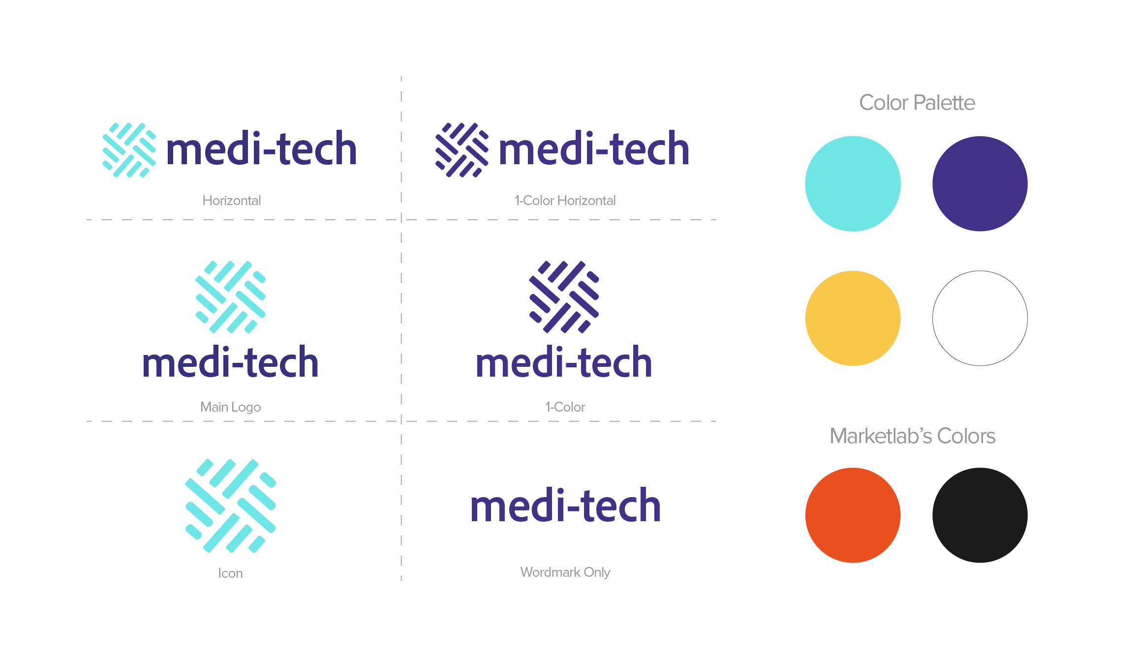 For the color palette, while the primary logo color is blue, we wanted to introduce more warmth to emphasize the "care" aspect by adding yellow. Additionally, to align with our master brand Marketlab, we incorporated ML's orange and black as secondary colors. This cohesive color strategy ensures that the Medi-Tech brand remains connected to Marketlab while also highlighting its unique focus on care and innovation.